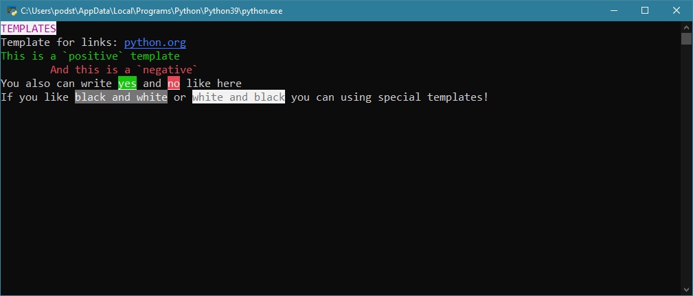 print("If you like " + bformat("black and white", TEMPLATE.BLACKWHITE1) + " or " + bformat("white and black", TEMPLATE.BLACKWHITE2) + " you can using special templates!")
