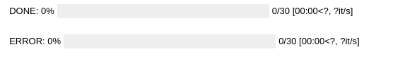 Ok, by default this works on one core of my i7-9700F and it took 52 seconds. Let's parallelize the calculations for all 8 cores and look at the progress. This can be easily done by replacing standart function map with progress_map.