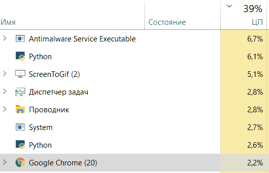 It looks good, doesn't it? But let's do the following, make the first task very difficult for the core. To do this, I will insert the number 38 at the beginning of the tasks list. Let's see what happens