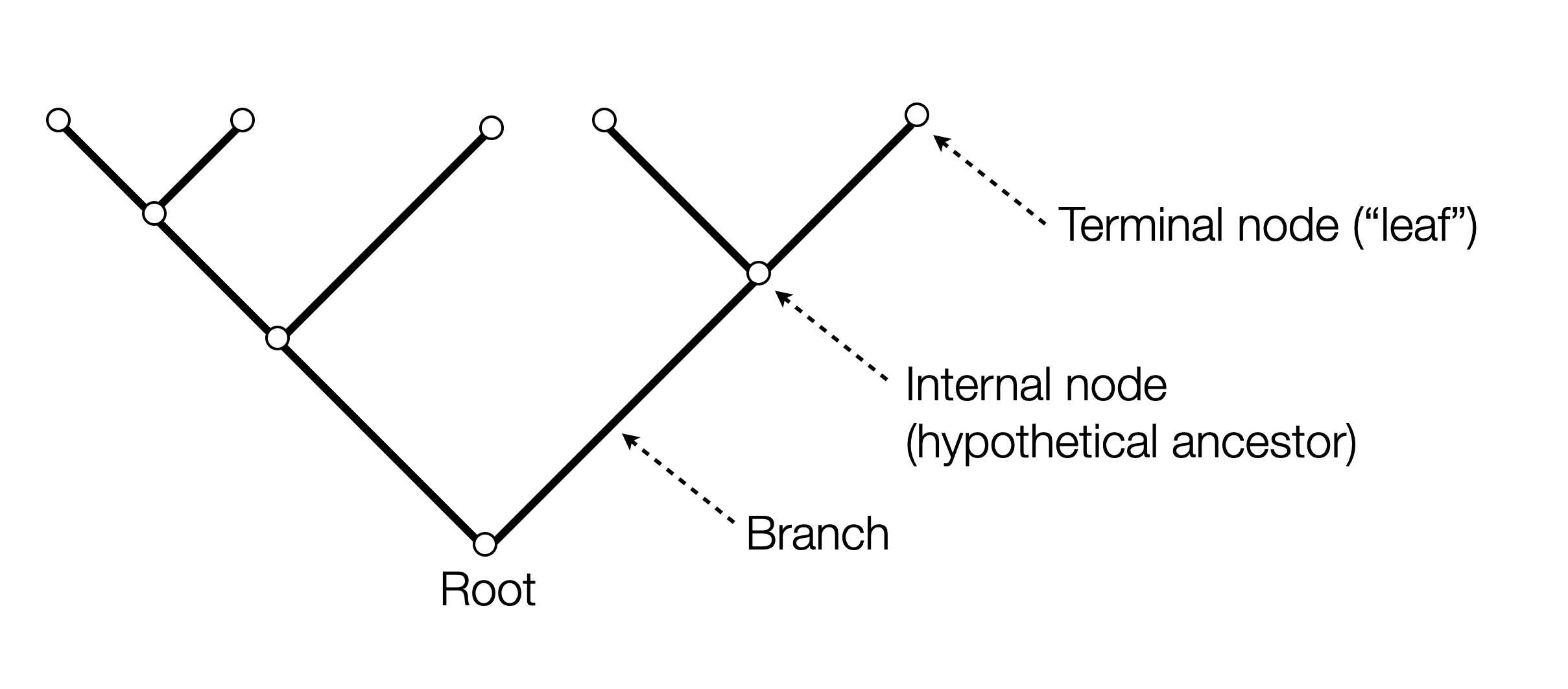 - Trees can be interrogated to find e.g. the parents or children of specific nodes, to find the most recent common ancestor (MRCA) of a set of leaves, to find the N leaves that are closest to a specified leaf, to find the longest path on the tree, etc.