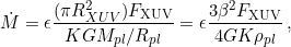 is the efficiency of the atmospheric escape with a value between 0 and 1, and K is a factor representing the impact of Roche lobe overflow (Erkaev et al. 2007)[^Erkaev-et-al-07], which can take on values of 1 for no Roche lobe influence and <1 for planets filling significant fractions of their Roche lobes.