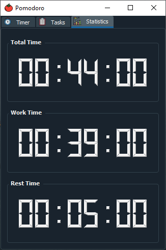 The "Statistics" tab helps you keep track of how much you have worked, rested and the total amount (rest time + work time) you have spend.
