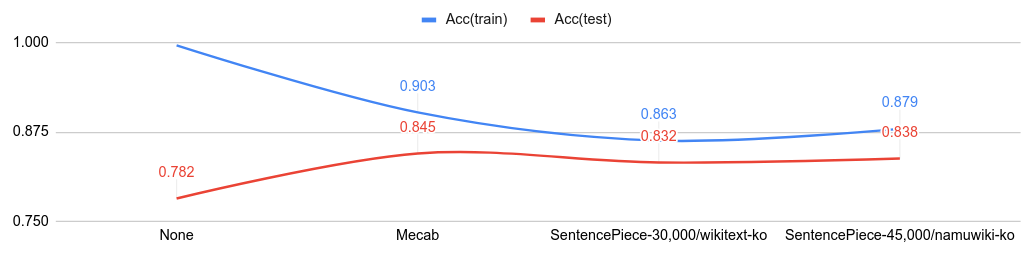 Comparisons with tokenizers on NSMC (Korean IMDb)