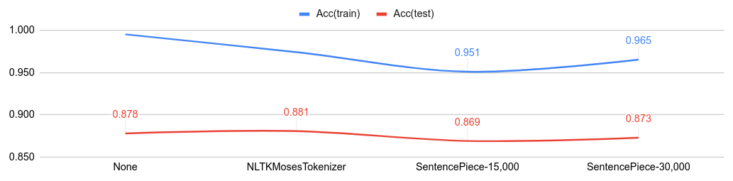 Below figure shows the classification accuracy from various tokenizer.