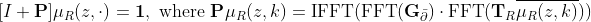 Since μR is inside the Fourier transform, we can not describe this system through the simple form Ax=b. Hence, the system of equations lends itself well to a solution by a matrix-free iterative solver like the GMRES.