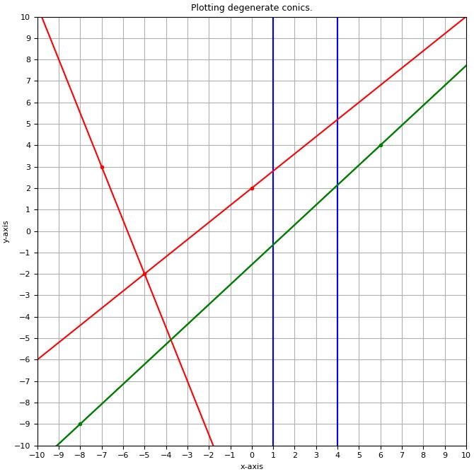 # Create and plot a degenerate conic with two coincident lines.