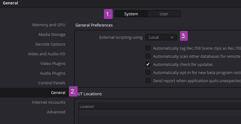For pydavinci to work by launching scripts outside the embedded console, make sure external scripting is set to Local in Settings -> System -> General