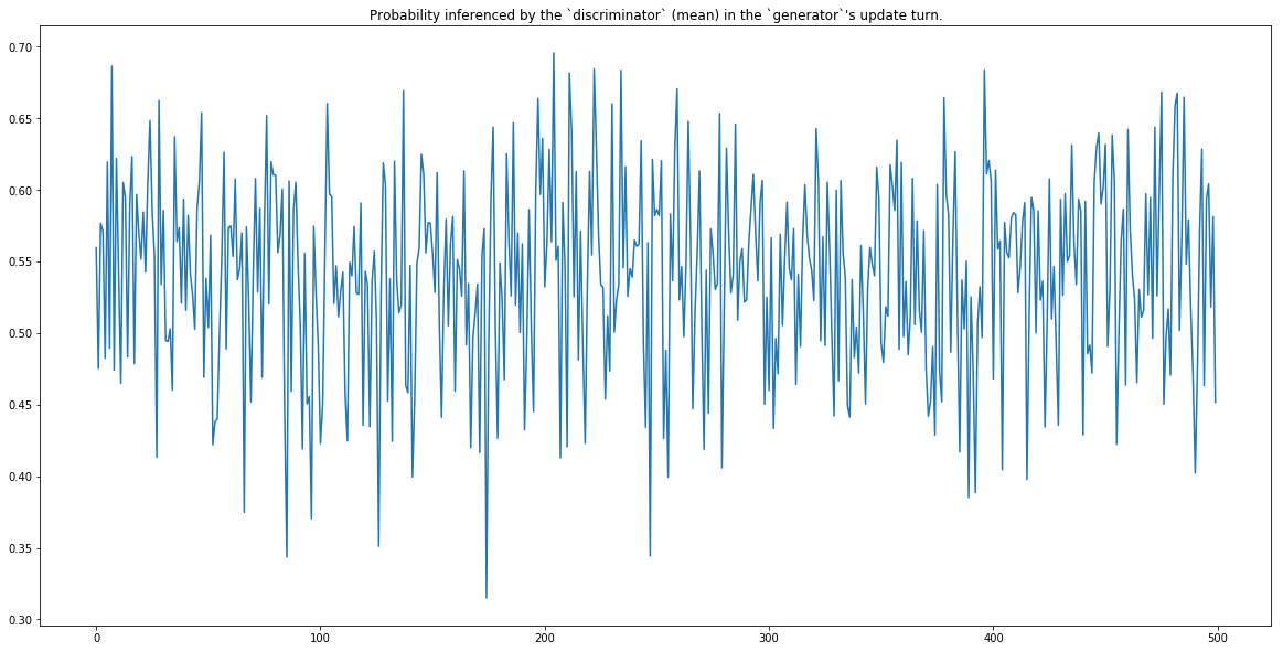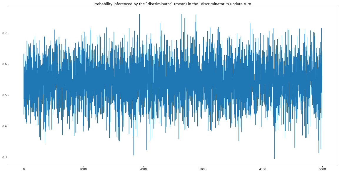 As the training progresses, the values are close to not 0.5 but about 0.55.