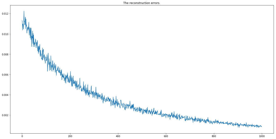 The error is not decreasing in steps toward the lower side. Initially, the error is monotonically increased probably due to the side effects of GeneratorModel and DiscriminativeModel learning in GANs framework. However, as learning as an Auto-Encoder progresses gradually in AAEs framework, it converges after showing the tendency of the monotonous phenomenon.