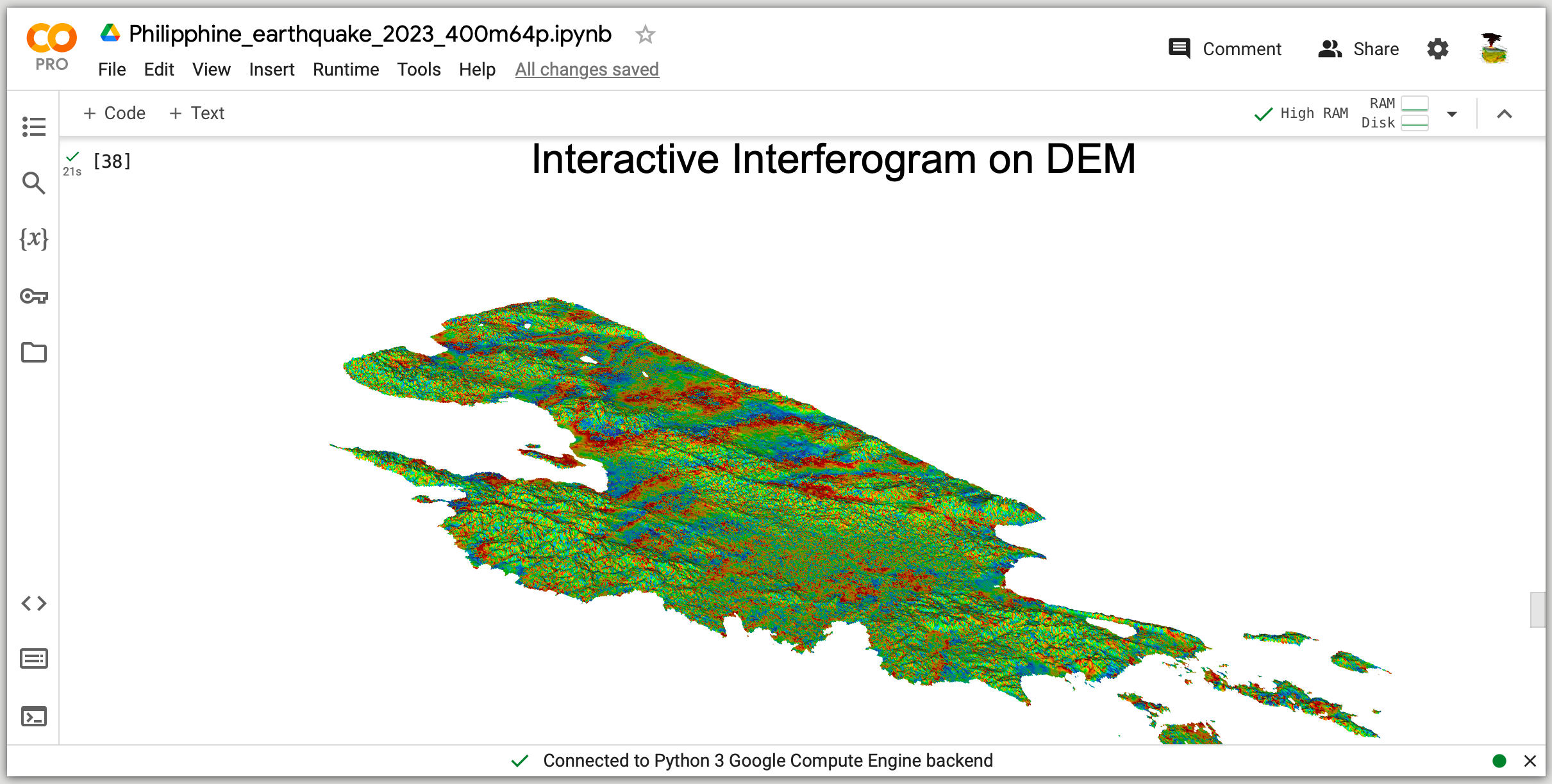 Show me online InSAR examples on Google Colab.