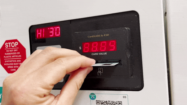 - Remove and reinsert card; wait for machine to read the card's balance. +5 minutes; now 35 minutes on timer.