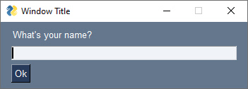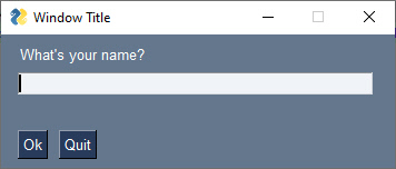 window = sg.Window('Window Title', layout) # Part 3 - Window Defintion