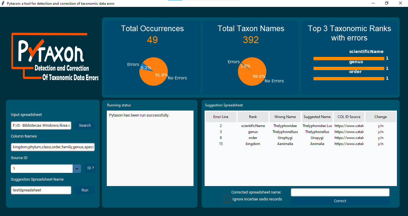 Pytaxon é uma aplicação open source de auxílio à pesquisa para identificação de erros e correção de nomenclatura taxonômica das espécies da biodiversidade