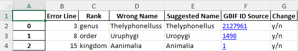 $ pytaxon -os <path to original spreadsheet> -cs <path of checked spreadsheet> -o <name of corrected spreadsheet>
