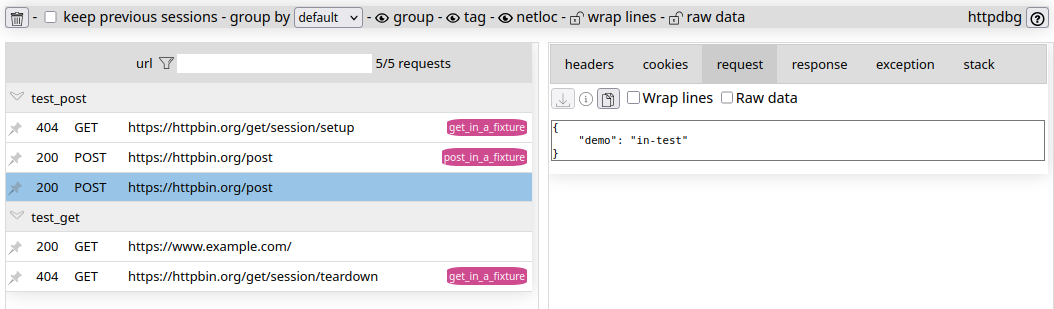 This plugin is based on the httpdbg Python tool. You can use it to trace all HTTP requests in your tests and view them in a more detailed user interface using the pyhttpdbg command.