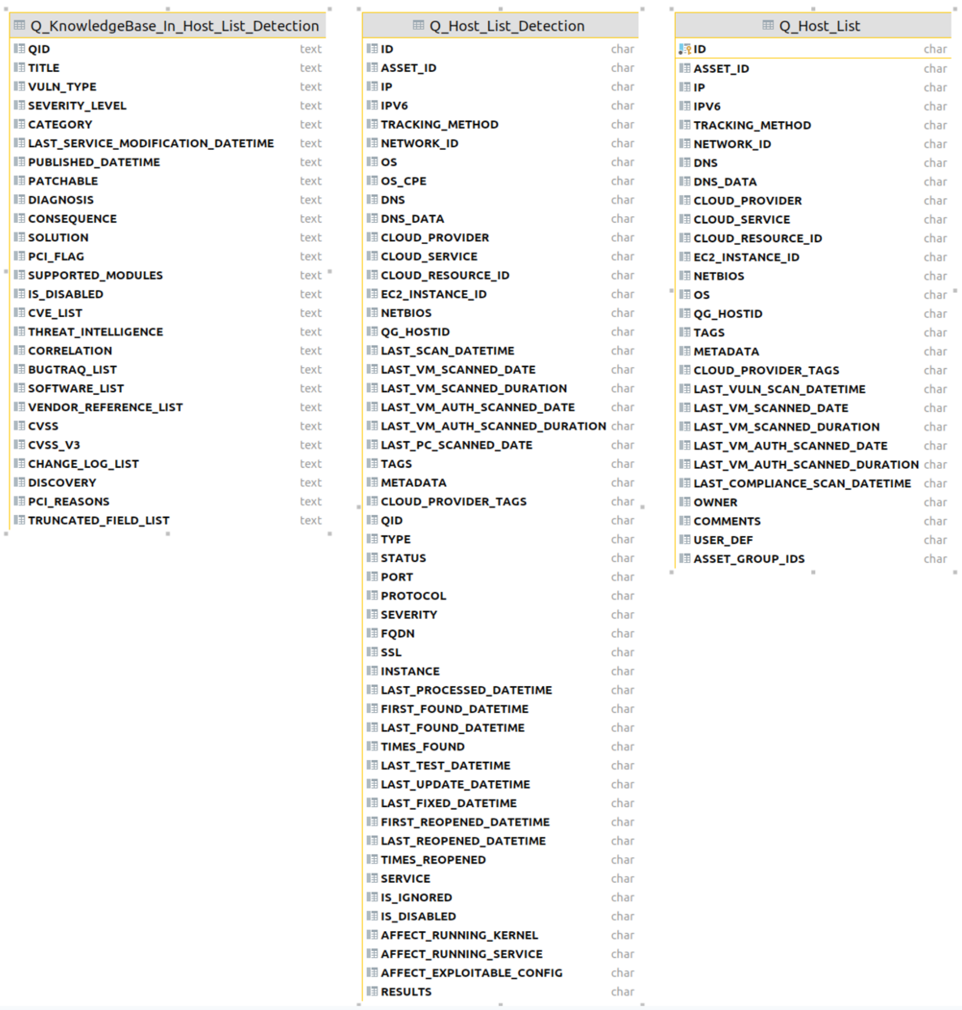qetl_manage_user -u [path] -e etl_host_list_detection- create csv, json and sqlite from Host List Detection Endpoint - sqlite will contain three tables: 1) Q_Host_List_Detection - Host List Detection Data from vm_processed_after - utc.now to now - Host List Detection Endpoint: /api/2.0/fo/asset/host/vm/detection/?action=list 2) Q_Host_List - Host List Data from vm_processed_after to now - Host List Endpoint: /api/2.0/fo/asset/host/?action=list 3) Q_KnowledgeBase_In_Host_List_Detection - corresponding QIDs from Q_Host_List_Detection - KnowledgeBase Endpoint: /api/2.0/fo/knowledge_base/vuln/?action=listOutput - Host List Detection SQLite Database Tables