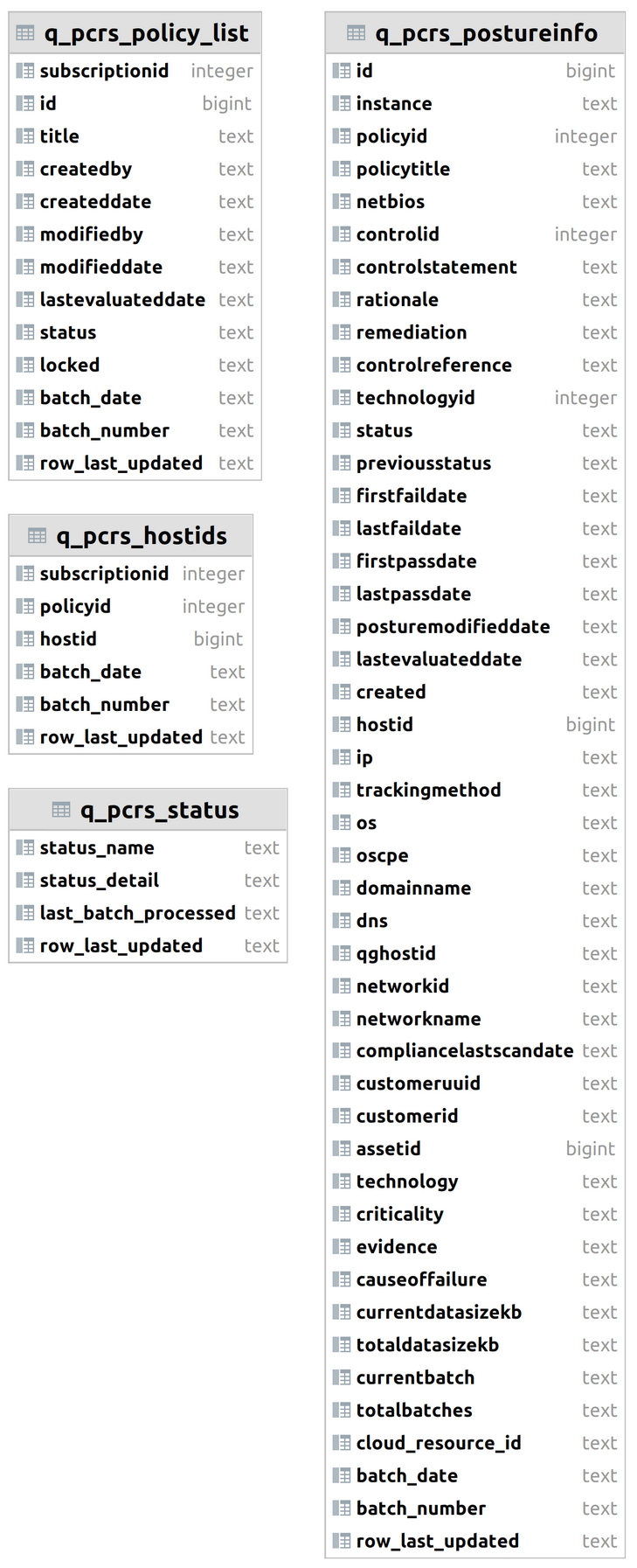 - Added Policy Compliance PCRS to QualysETL including the Policy List, Host Ids associated with each Policy and Posture Info.
