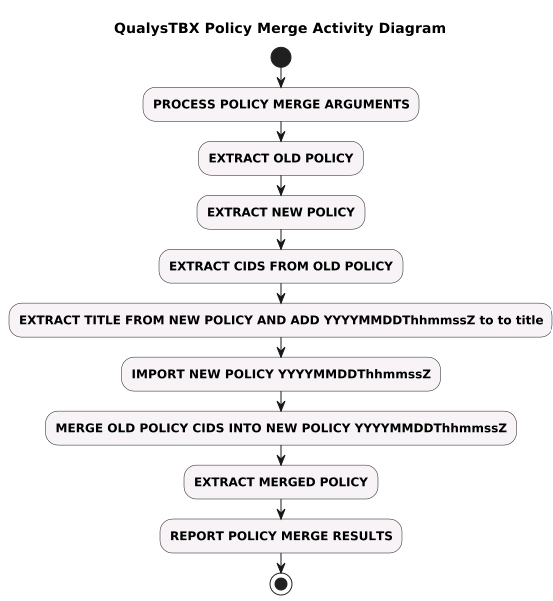 qualystbx --execute policy_merge --new_policy_id=[new policy id] --old_policy_id=[old policy id] --cid_list=[comma separated cid list] [--log_to_console]