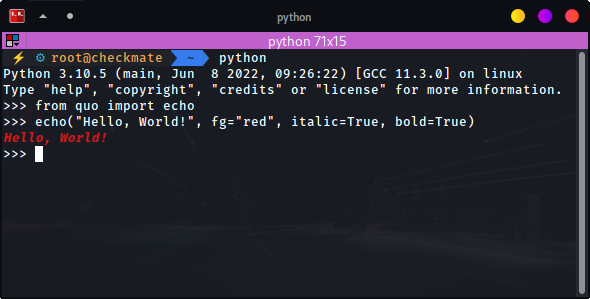 Quo is a toolkit for writing Command-Line Interface(CLI) applications and a TUI (Text User Interface) framework for Python.