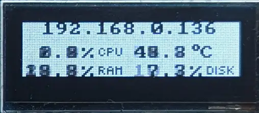 - show status information on the display: IP address, CPU usage, CPU temperature, RAM usage, disk usage.