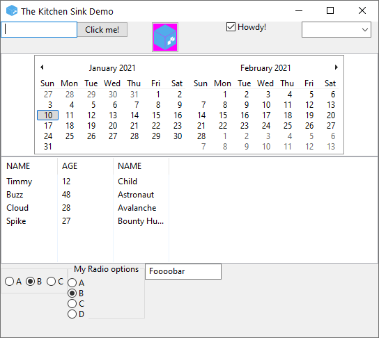 Given the symbiotic nature, practicality is favored over purity of abstraction. You'll mix and match WXPython code and re-wx code as needed. A good example of this is for transient dialogs (confirming actions, getting user selectsions, etc..). In React land, you'd traditionally have a modal in your core markup, and then conditionally toggle its visibility via state. However, in re-wx, you'll just use the dialog directly rather than embedding it in the markup and handling its lifecycle via is_open style state flags. This is practical to do because, unlike React in Javascript, WX handles managing the UI thread thus allowing us to block in place without any negative effects. Which enables writing straight forward in-line Dialog code.