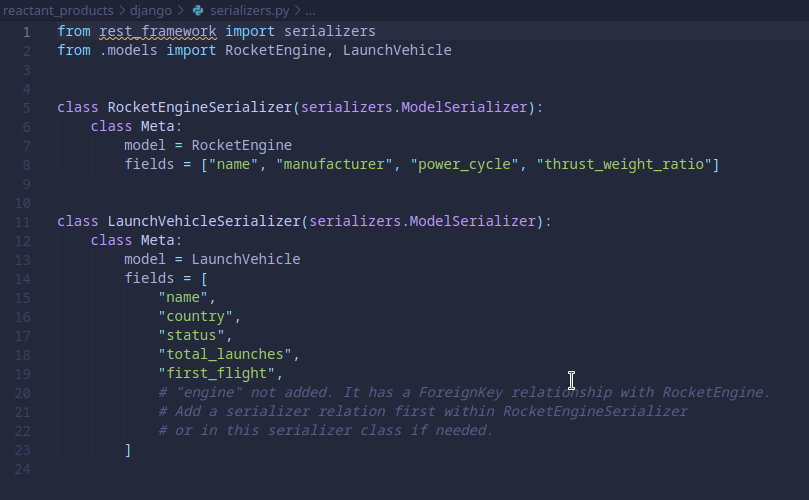 Django serializers.py finished rendering.