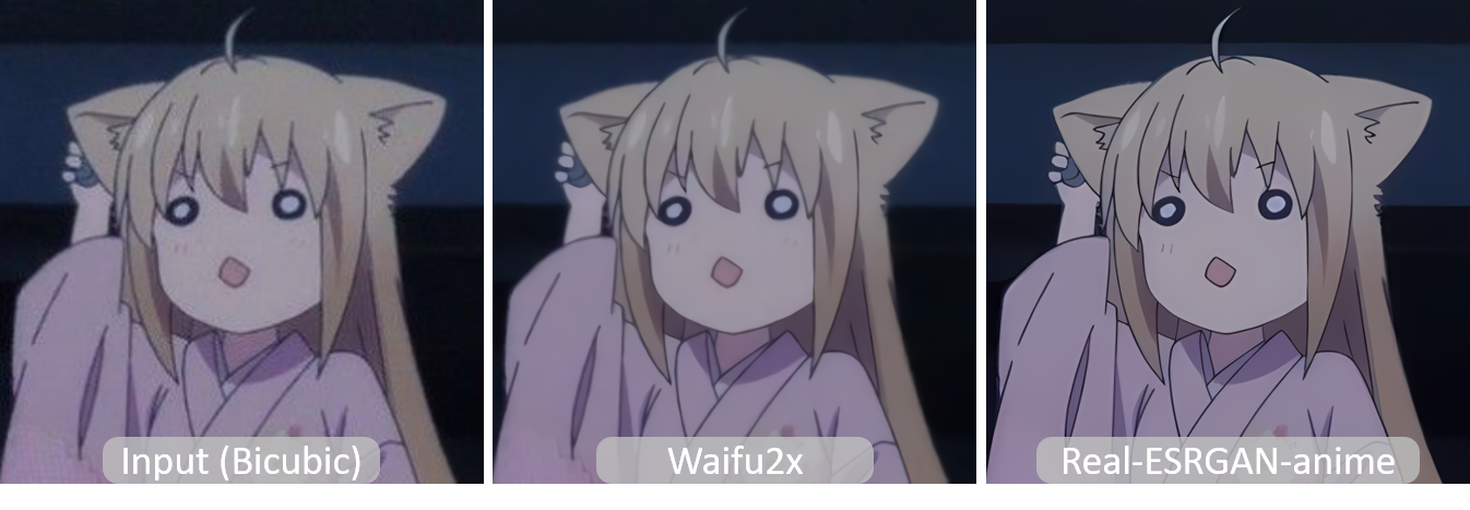- ✅ Add RealESRGAN_x4plus_anime_6B.pth, which is optimized for anime images with much smaller model size. More details and comparisons with waifu2x are in anime_model.md