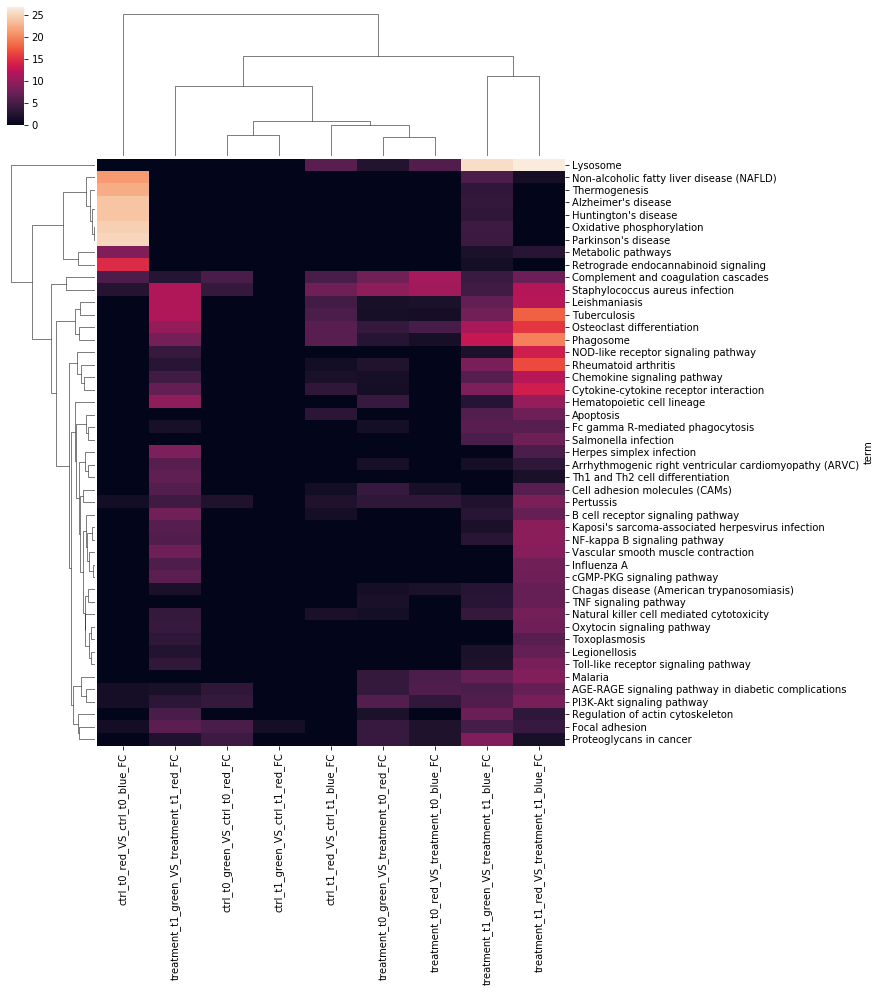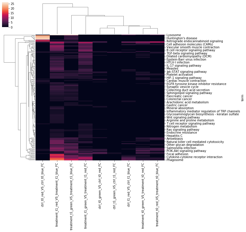 readable: if flagged, the output clustermap will be drawn as tall as required to fully display all the terms contained in it. Be warned that this might get very tall, depending on the number of terms.