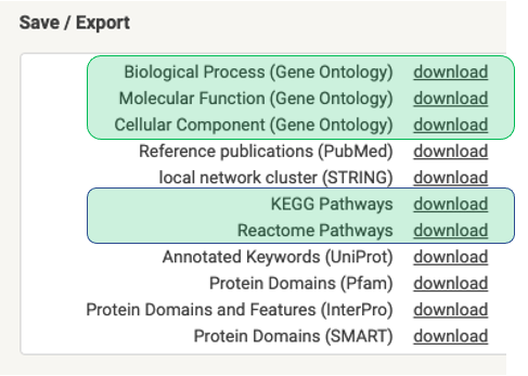 restring will look for genes in the files you have specified, interrogate STRING to get functional enrichment data back (these tables, looking exactly the same to the ones you would manually retrieve, will be saved into subfolders of the output folder), then write aggregated results and summaries.