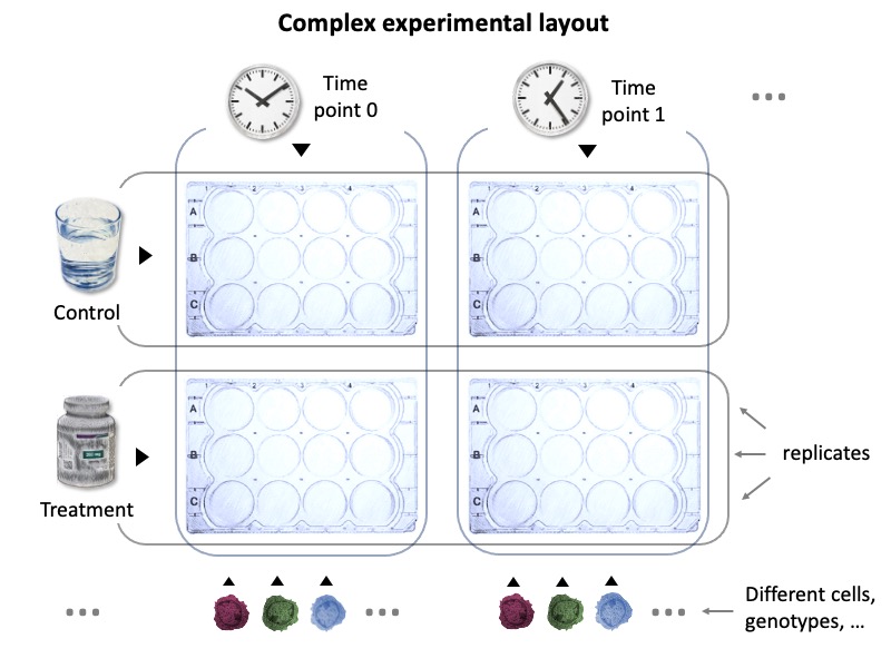 Our sample experimental setup has two treatments, given at two time points to three different sample types. Let's assume those samples are cells of different genotypes, and we'd like to mainly investigate genotype comparisons. After quantifying gene expression by RNAseq, we have DE genes for every comparison. As in many experimental pipelines, each list of DE genes is investigated with functional enrichment tools, such as String. But every comparison generates one or more tables. restring makes it easy to generate summary reports from all of them, automatically.