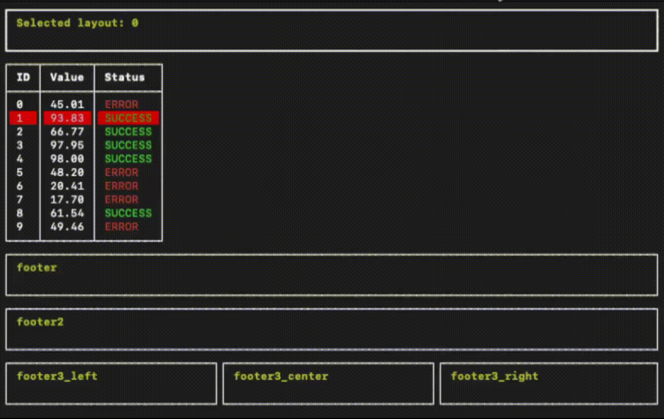 Extends the Rich python library with interactive layouts and tables, allowing seamless navigation and interaction via keyboard shortcuts