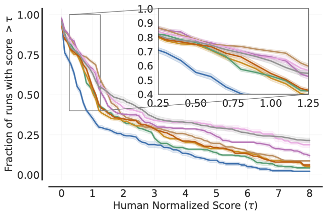 xlabel=r'Human Normalized Score $(\tau)$',