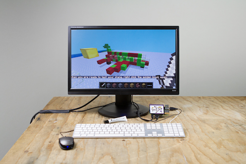 A Python program that reads the selected dots on the Raspberry Pi DOTs board and uses these to generate a 3d simulated airplane inside Minecraft Pi.
