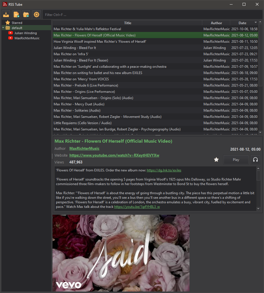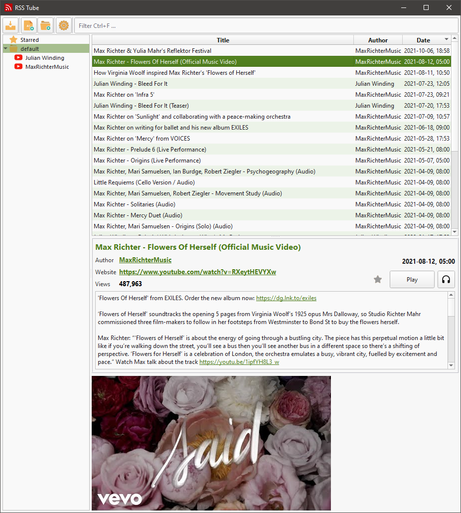 A simple desktop application for Youtube, based on RSS feeds.