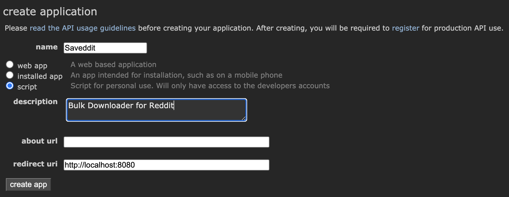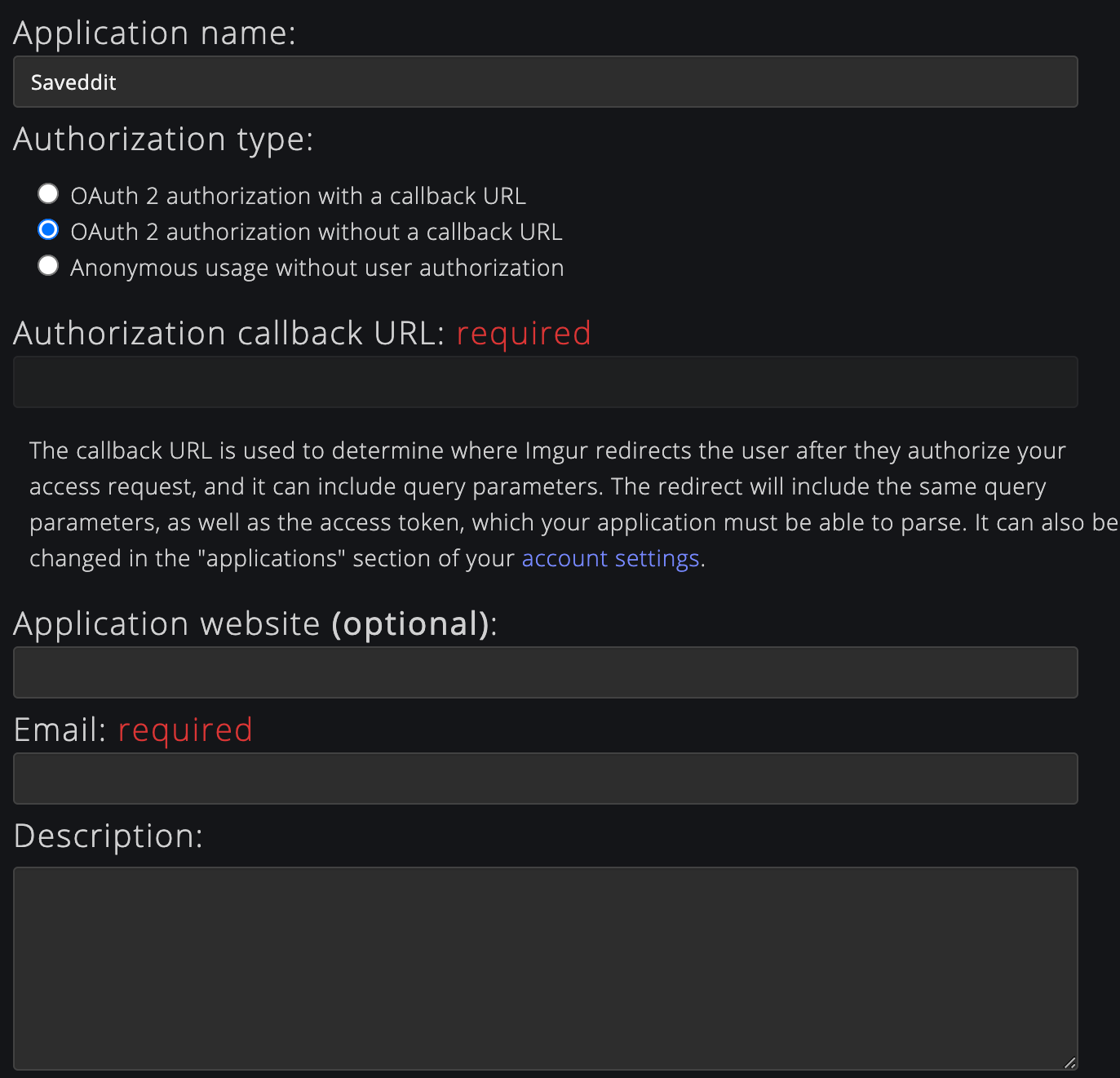 These registrations will authorize you to use the Reddit and Imgur APIs to download publicly available information.
