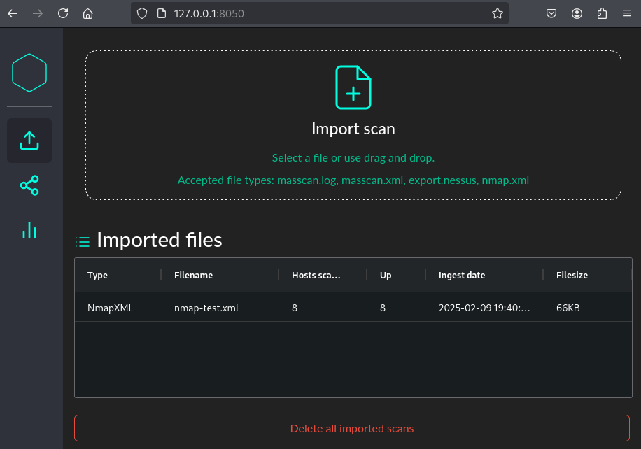 The following scanner outputs are supported. The main focus of this project lies on nmap but ingestors for other scanners can be integrated easily. Check out the existing ingestors here if you want to extend one or build your own.