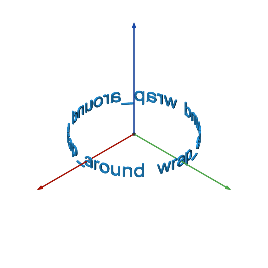 f = text(FONT, TEXT).extrude(0.1).orient(Y).wrap_around(-w / 2, w / 2)