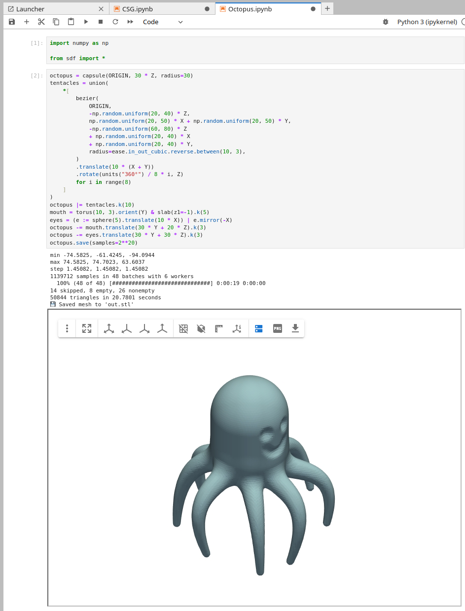 sdfCAD is best worked with in Jupyter Lab: