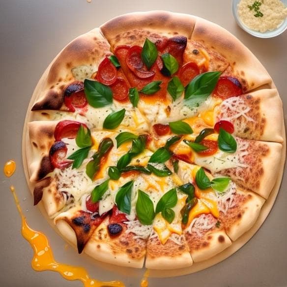 | Word2Img | Word2Img(api_key).generate(image = "https://www.segmind.com//word2img_input.png", prompt = "top-view, A mouth-watering pizza topped with gooey cheese and fresh ingredients,Food Photography") |