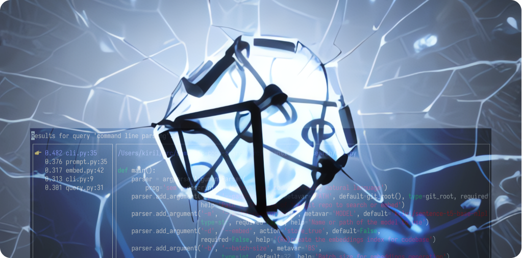 In a nutshell, this application uses a transformer machine learning model to generate embeddings of methods and functions in your codebase. Embeddings are information dense numerical representations of the semantics of the text/code they represent.
