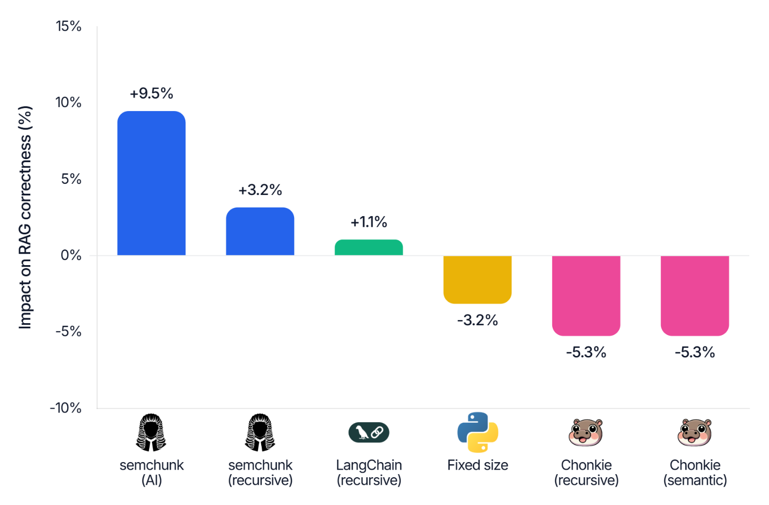 Powered by a novel hierarchical chunking algorithm, semchunk delivers 15% better RAG performance than its closest competitors (see Benchmarks 📊).