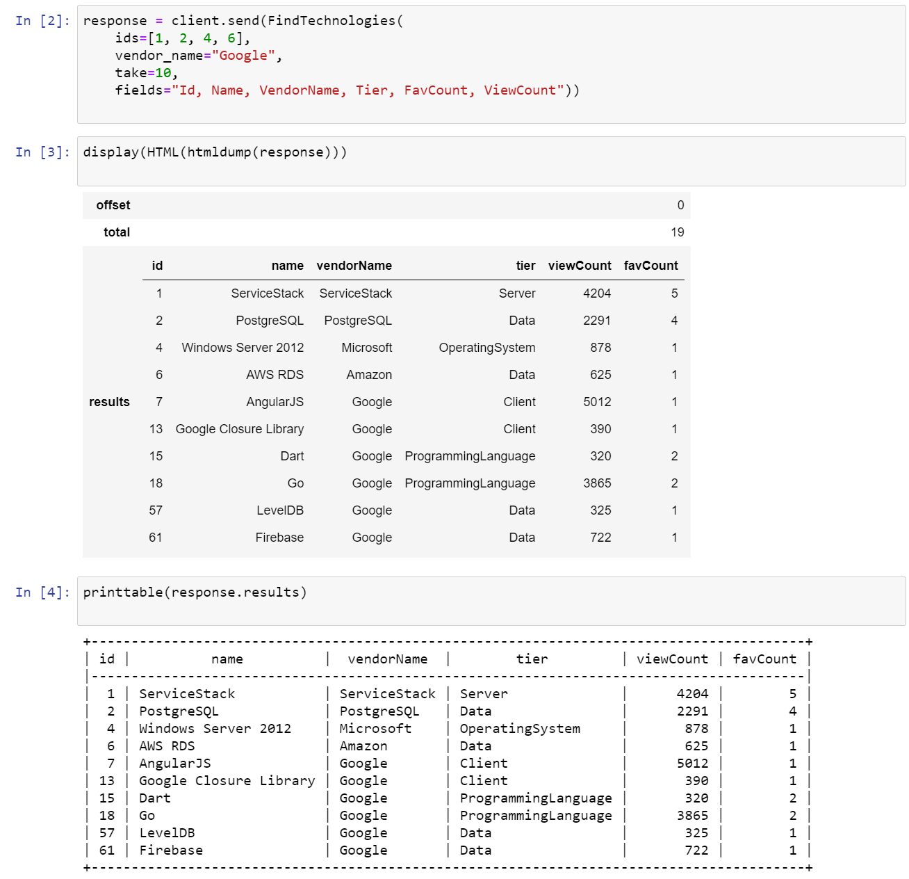 Alternatively you can use htmldump to generate API responses in a HTML UI which is especially useful in Python Jupyter Notebooks to easily visualize API responses, e.g: