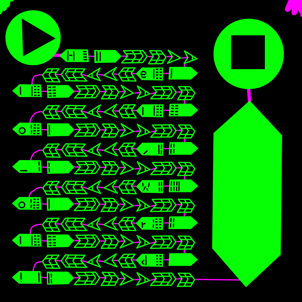 In short, a Shapes program consists of shapes and paths connecting them. Each shape does different things depending on the shape of the shape.