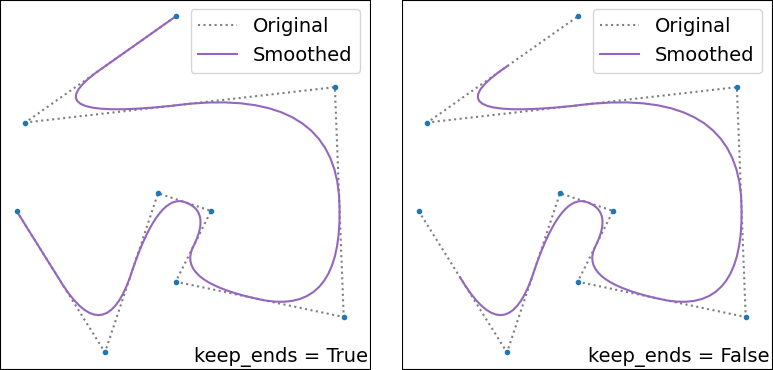 >>> smoothed_geometry = chaikin_smooth(geometry, iters, keep_ends)