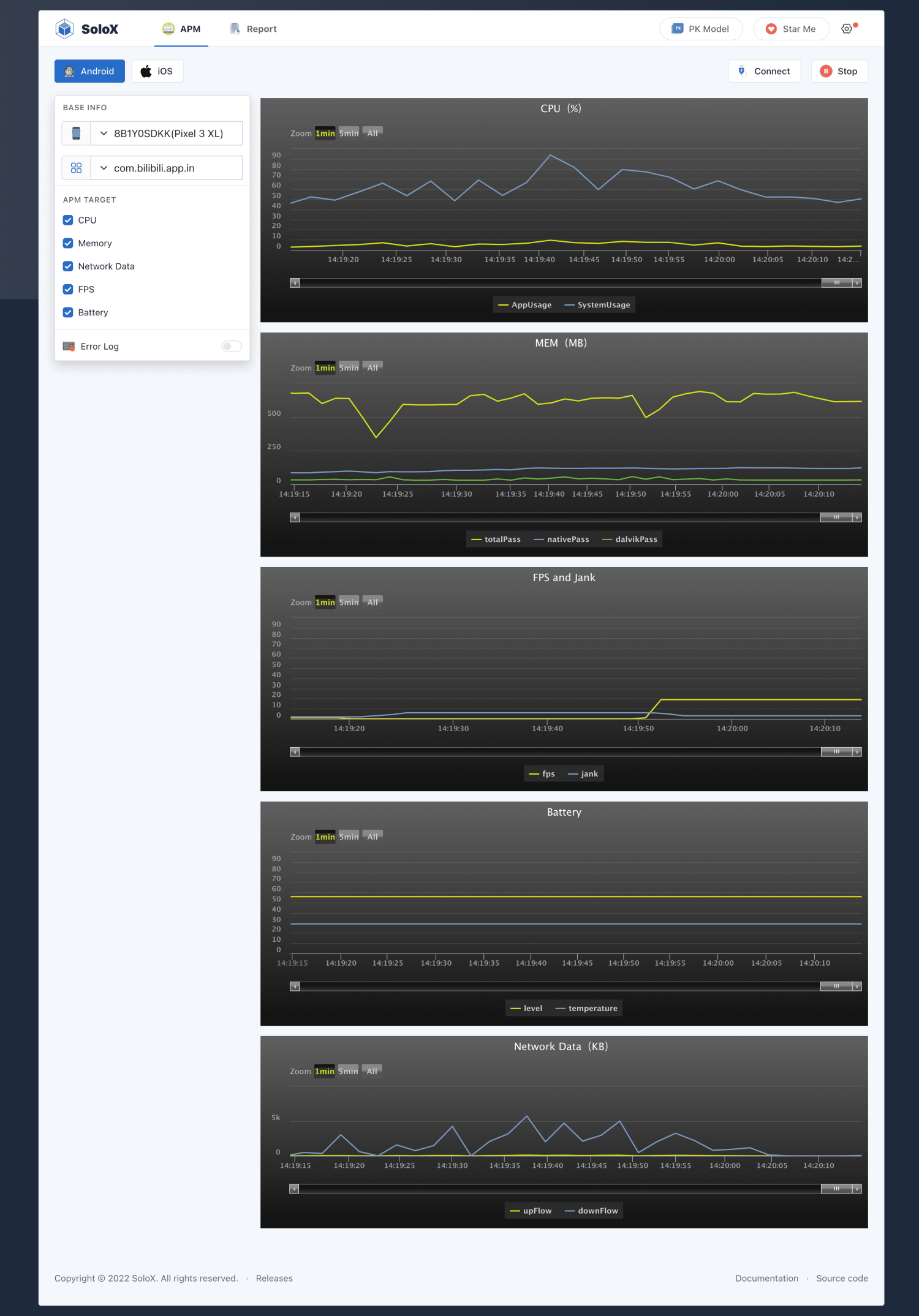 SoloX - Real-time collection tool for Android/iOS performance data.