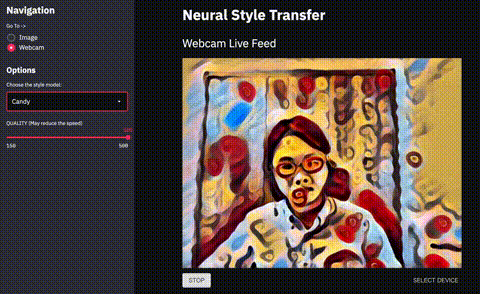 It applies a wide variety of style transfer filters to real-time video streams.