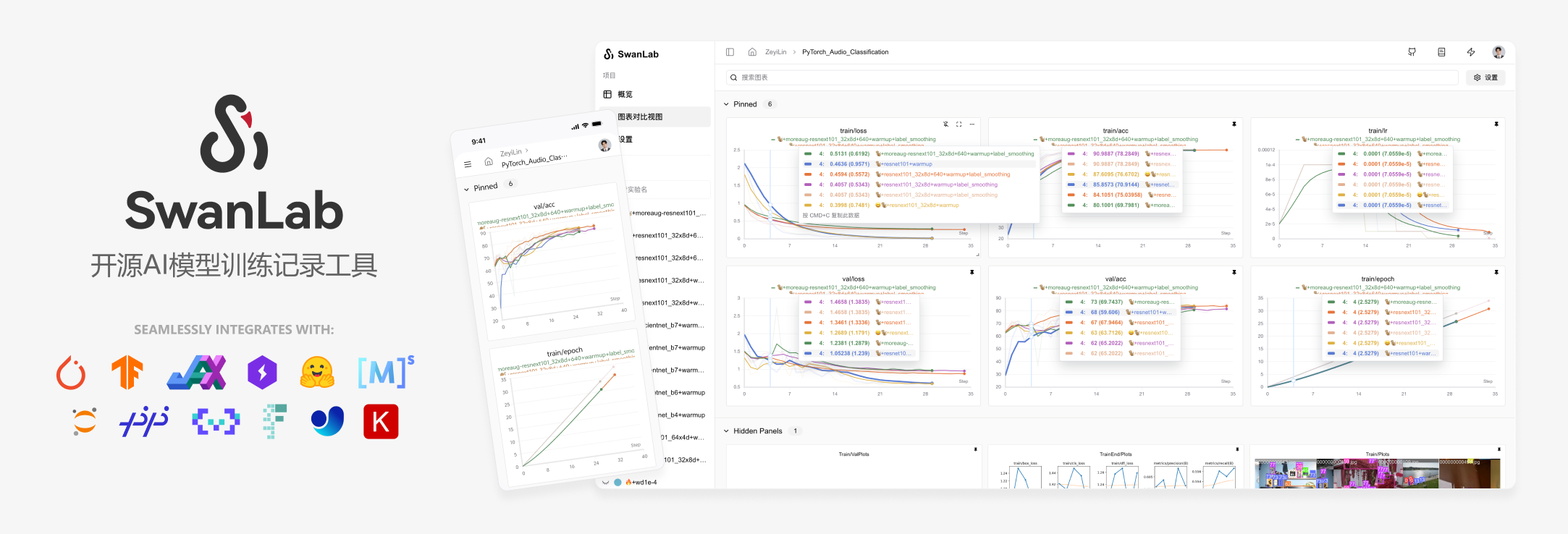 SwanLab 是一款AI训练分析与指标观测平台,面向模型训练团队,提供训练可视化、自动日志记录、超参数记录、实验对比、多人协同等功能,帮助团队快速发现训练问题,加速模型迭代。