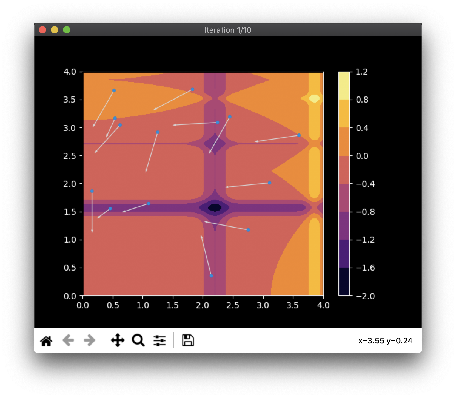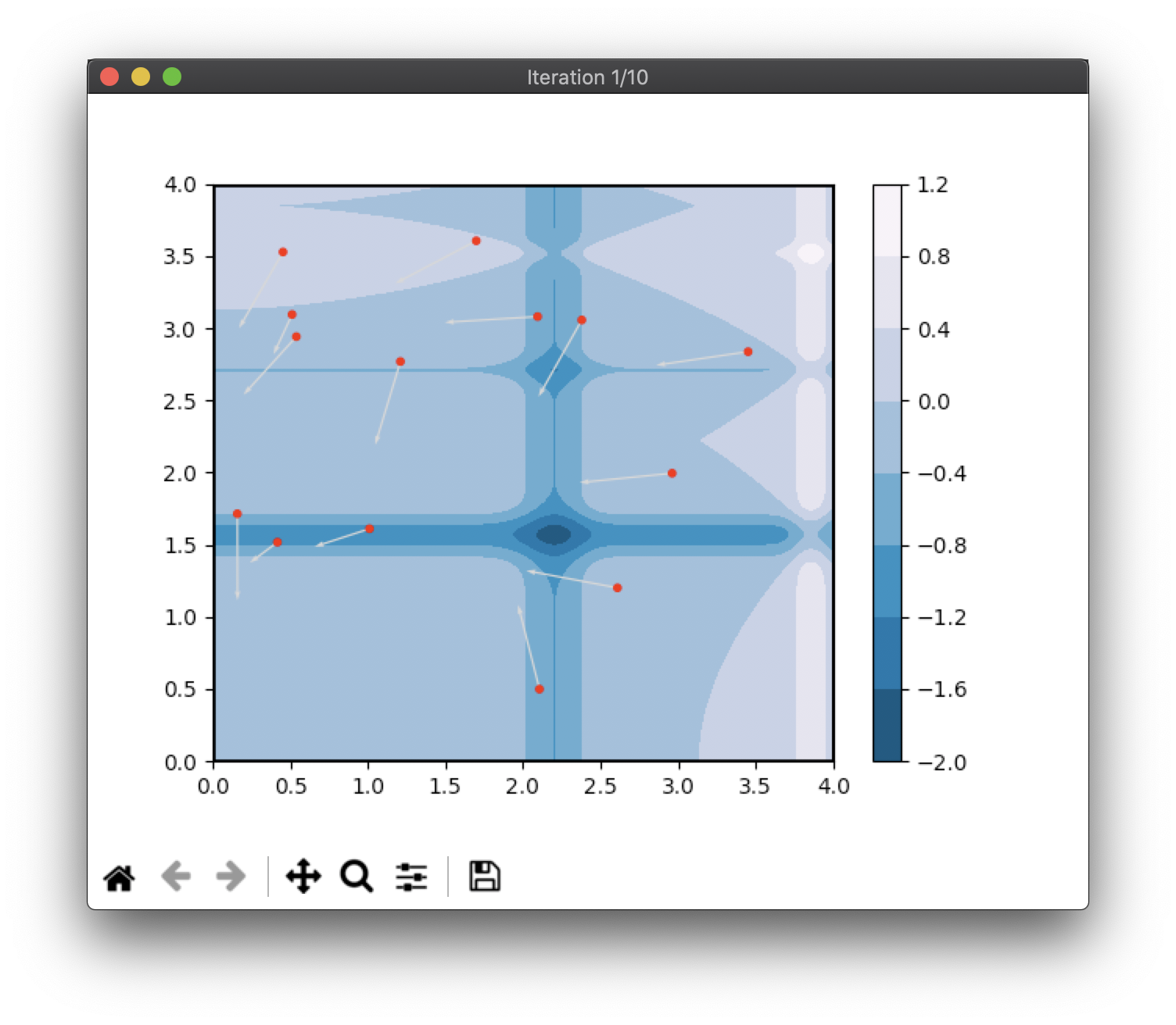 This repository implements several swarm optimization algorithms and visualizes their (intermediate) solutions. To run the algorithms one can either use the CLI (recommended) or the API.