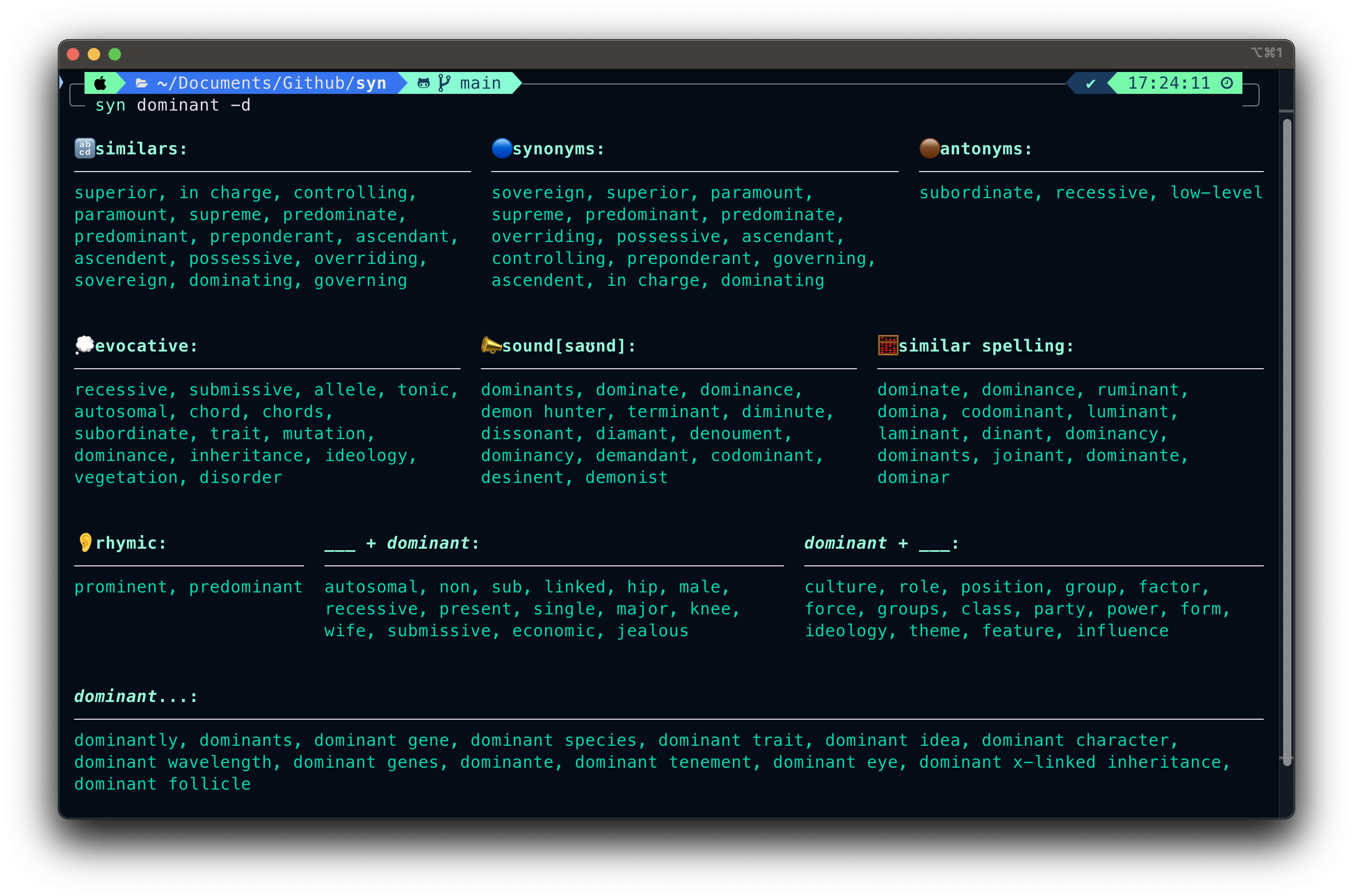 🌾Get synonyms and antonyms of words from Thesaurus.com and other sources in your terminal, with rich output.