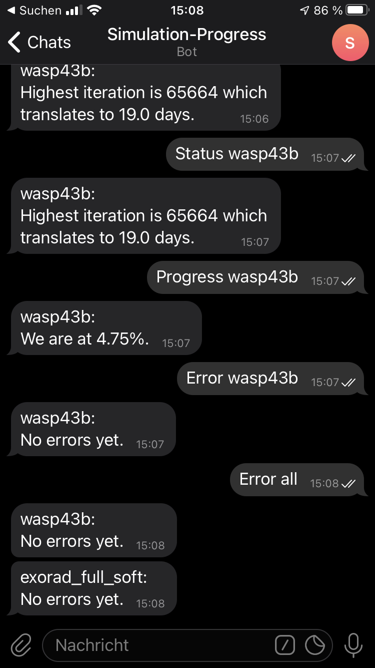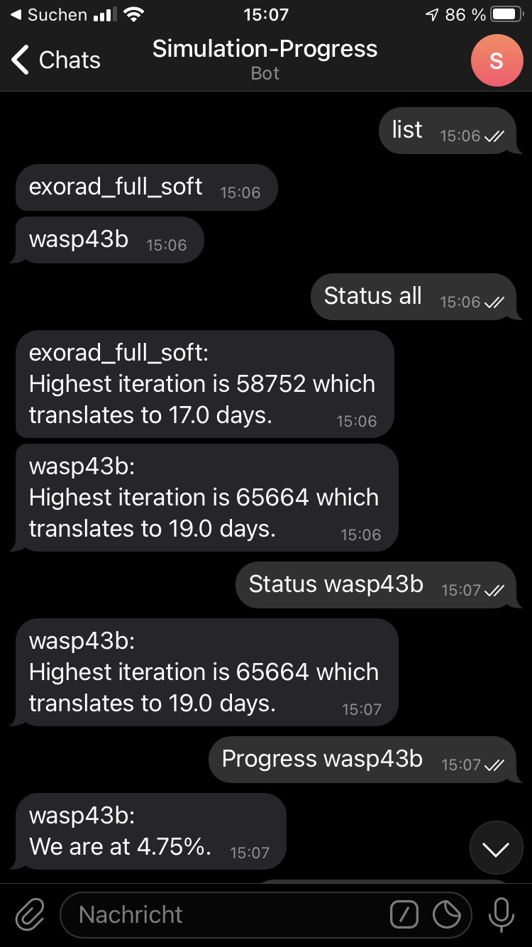 Interact with your computing cluster via telegram to get realtime information on your running jobs.